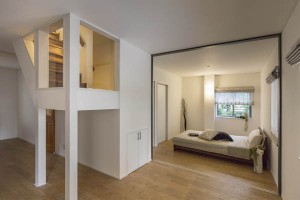 新たに親世帯のLDKに面してガラス張りとなった内階段を設けることで各世帯のつながりを強めています。