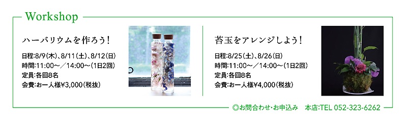 今月は「ハーバリウム」「苔玉アレンジ」の2点をご案内致しております。
