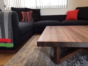 正方形のウォールナット無垢材のリビングテーブルは、お客様を招く時も活躍します。