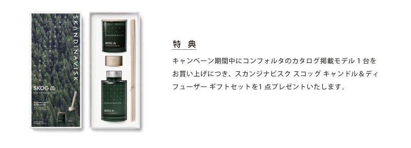 より豊かでリラックスした時間をお届けするため、北欧の森をイメージした香りのフレグランスセットをプレゼントいたします。