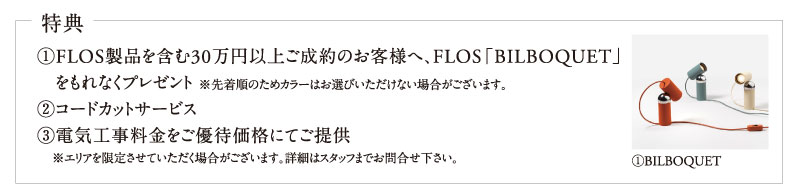 ① FLOS製品を含む30万円以上ご成約のお客様へ、FLOS「BILBOQUET」をもれなくプレゼント